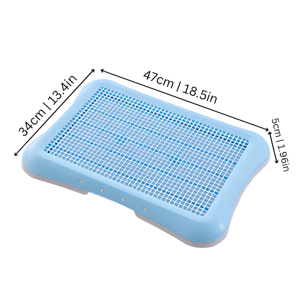 This indoor dog potty tray helps create a cleaner and more organized potty area for pets at home. The raised grid surface allows liquid to pass through to the lower tray, helping keep your dog’s paws dry. It is suitable for puppy training, small dogs, or older pets that need an indoor relief spot.
